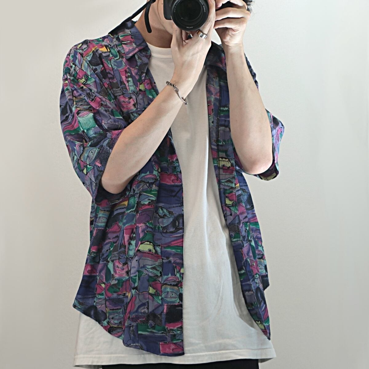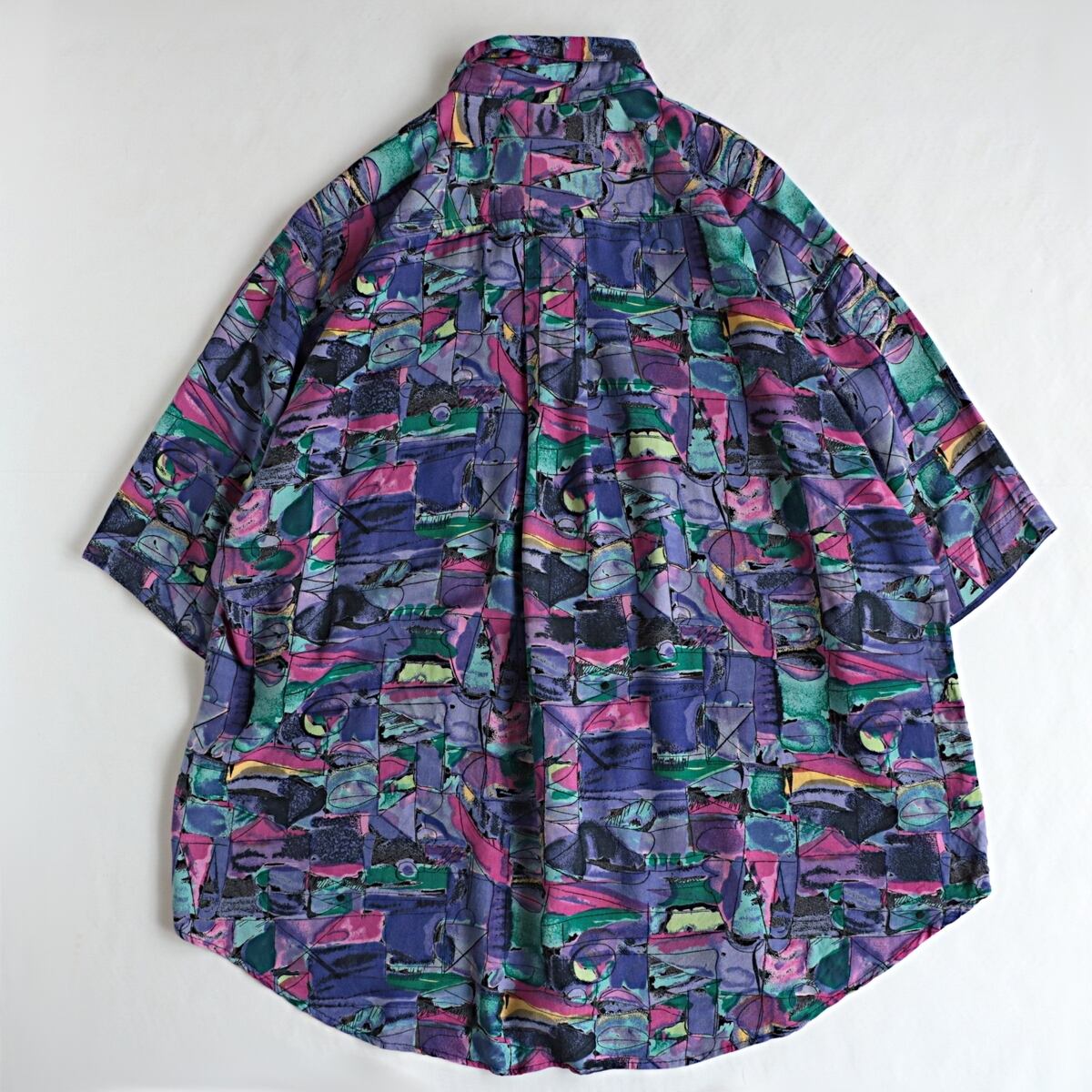 80-90s GOOUCH アートパターン 総柄 レーヨン 半袖 シャツ 古着 used