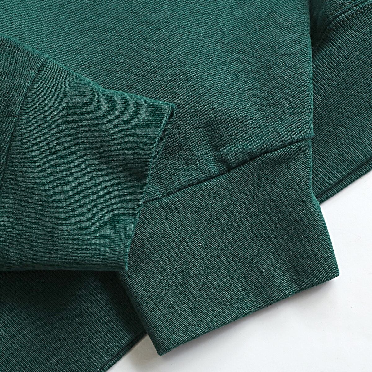 コットン、ポリエステル混紡ボディ。深みのあるダークグリーンカラー。