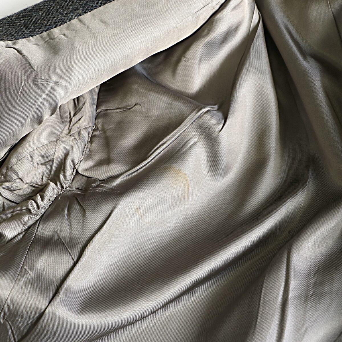 画像に記載している袖付き、タグ上付近の裏地に汚れが見られます。