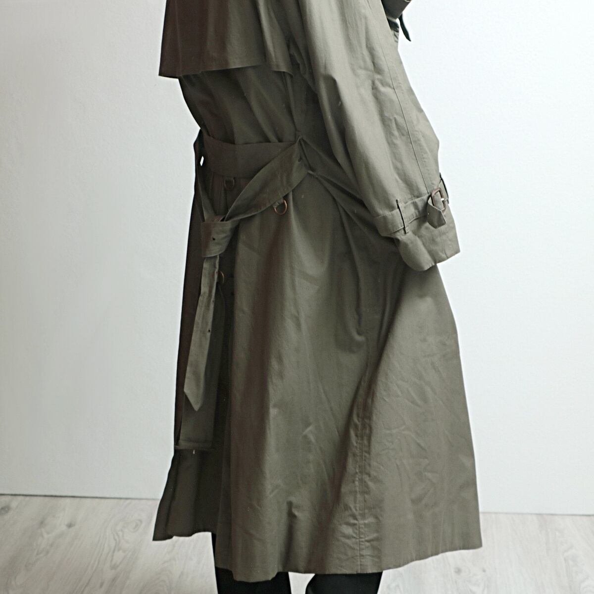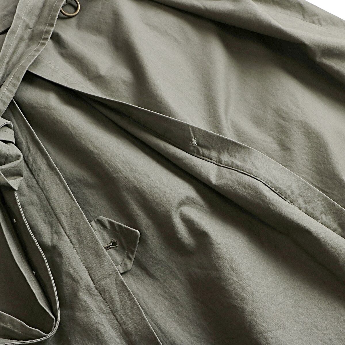 前裾部分小さな傷、小穴が見られます。ベルト部分に留め具跡。