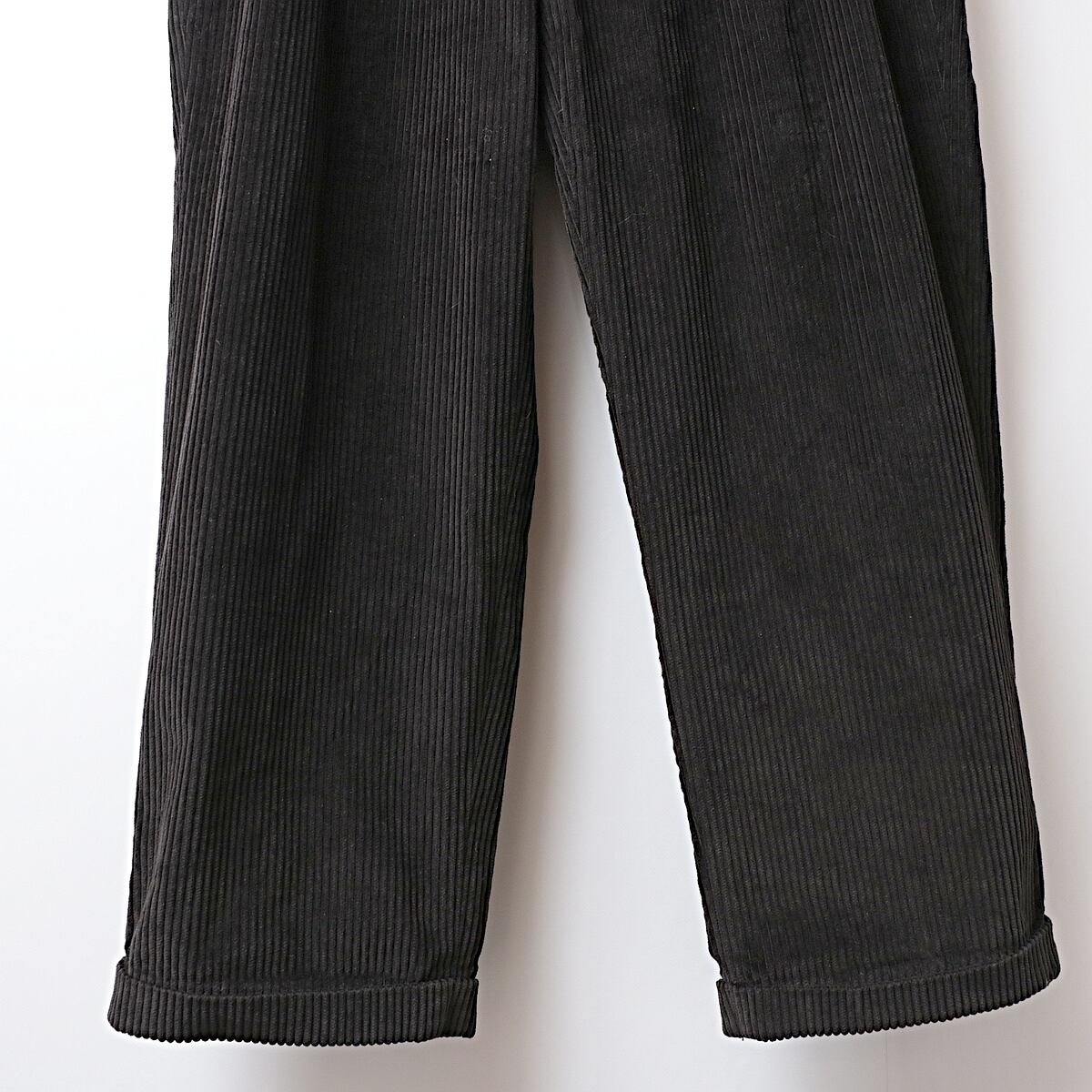 ボディはコットン100%のブラックカラーの太畝コーデュロイ地。