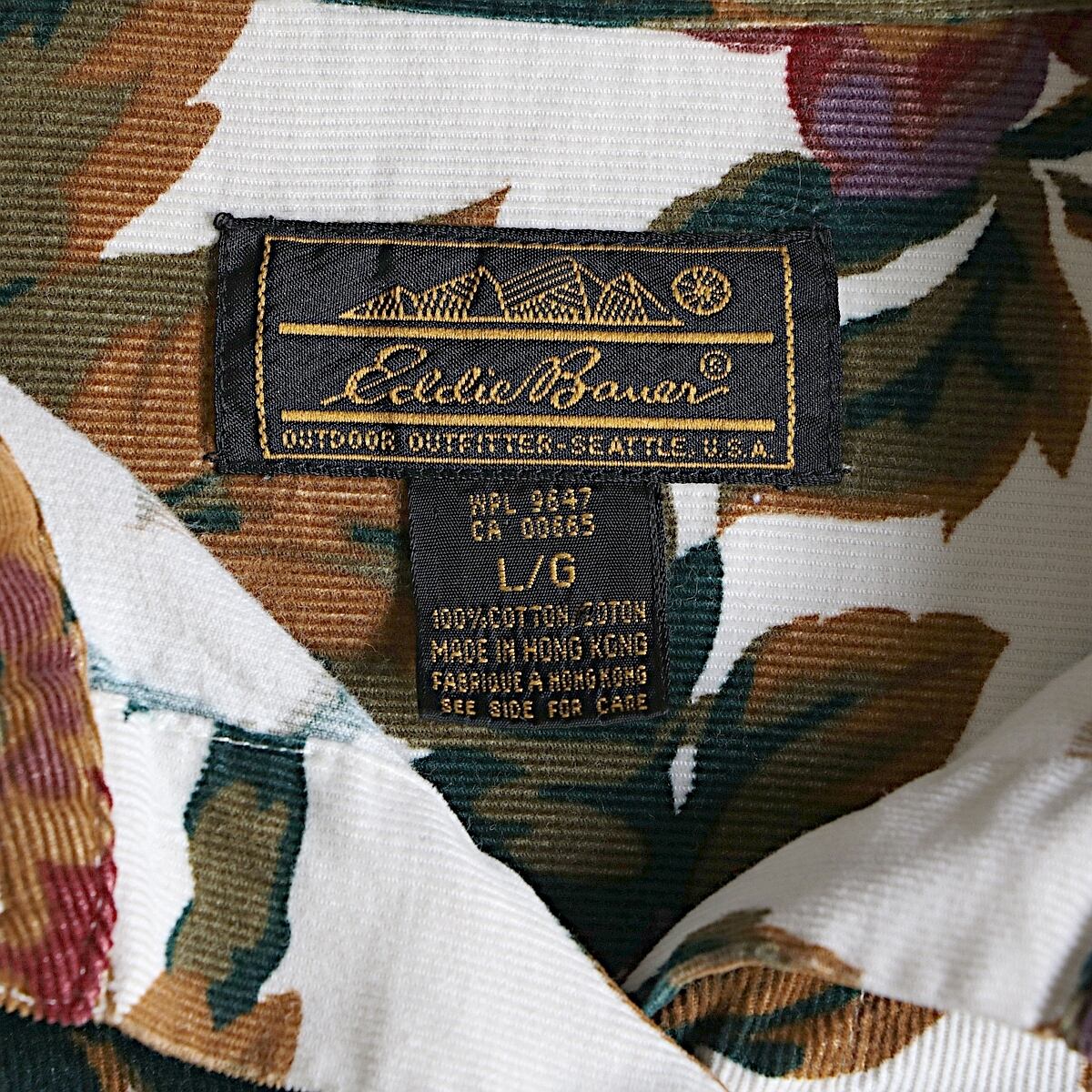 90s Eddie Bauer エディーバウアー 総柄コーデュロイシャツの紹介です。