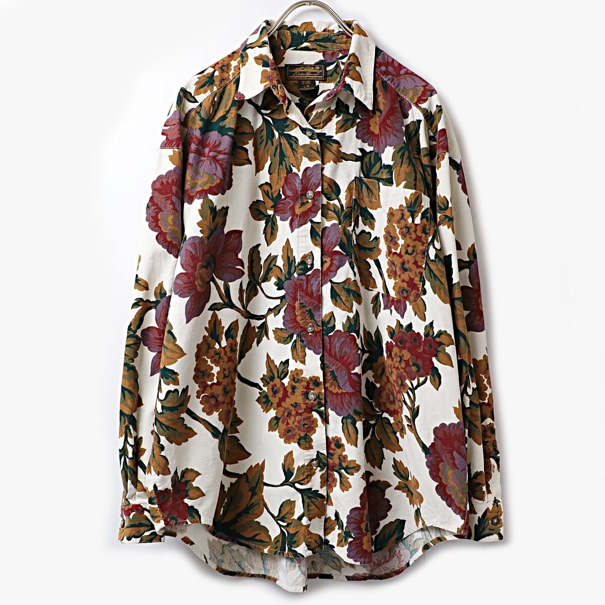 90s Eddie Bauer エディーバウアー ボタニカル 総柄 コーデュロイ シャツ 古着 used レディース