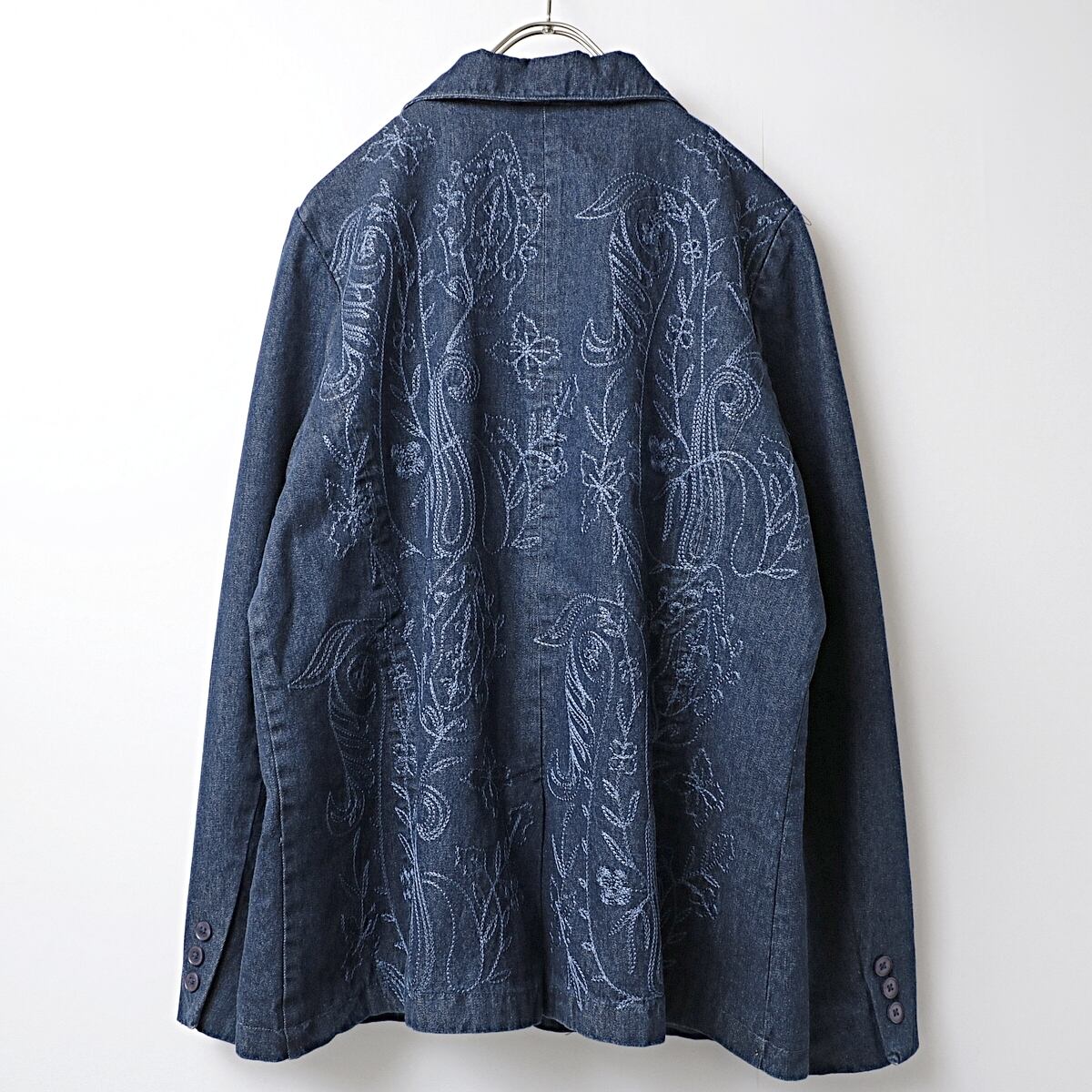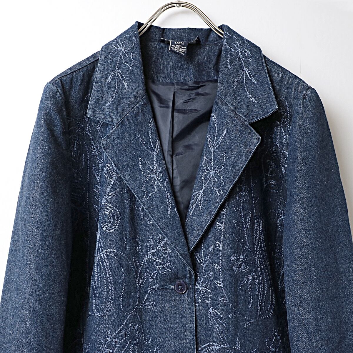 90s DENIM&Co ボタニカル刺繍 デニム テーラードジャケット 古着 used レディース