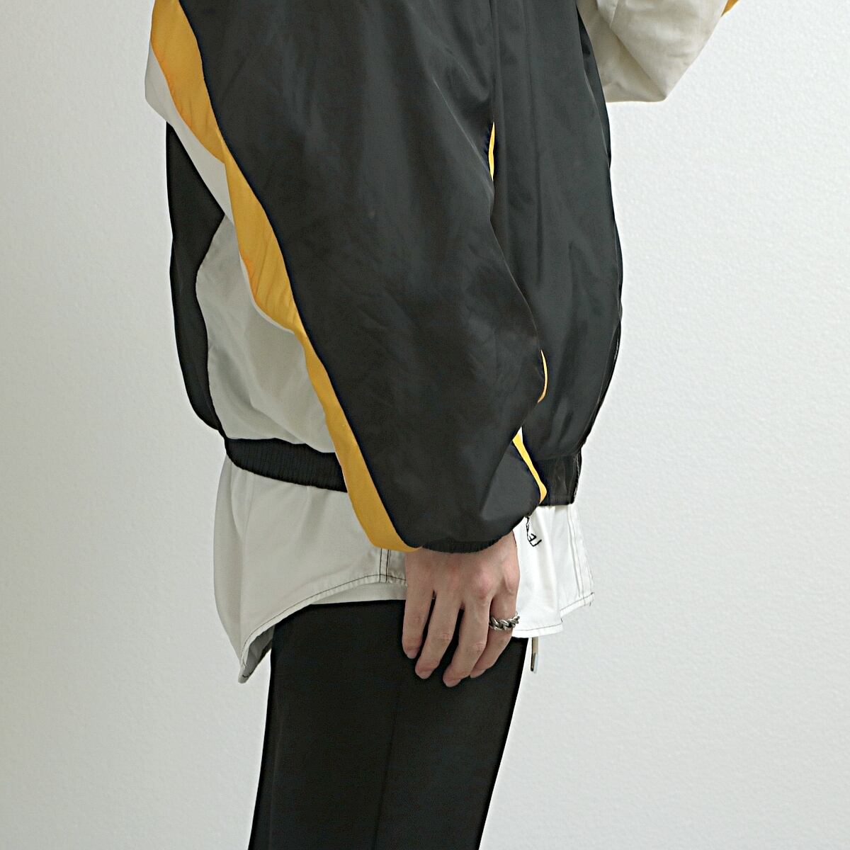 こちらは黒と白を基調としたボディに袖部分の発色の良いイエローが差し色になったナイロン地。