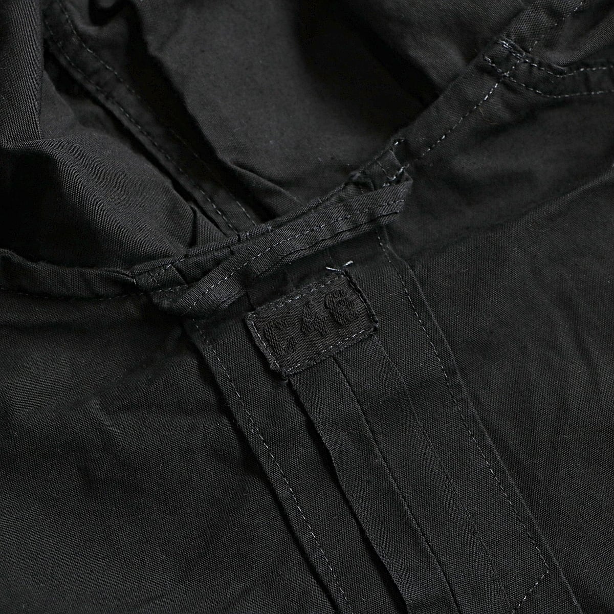 フィールドジャケットなどの上に着る事を想定している為、身幅を大きく取ったはボディはウエストのコードを絞ることで更に丸みを持ったシルエットになり着丈感と合わせて使い易い一枚になっています。