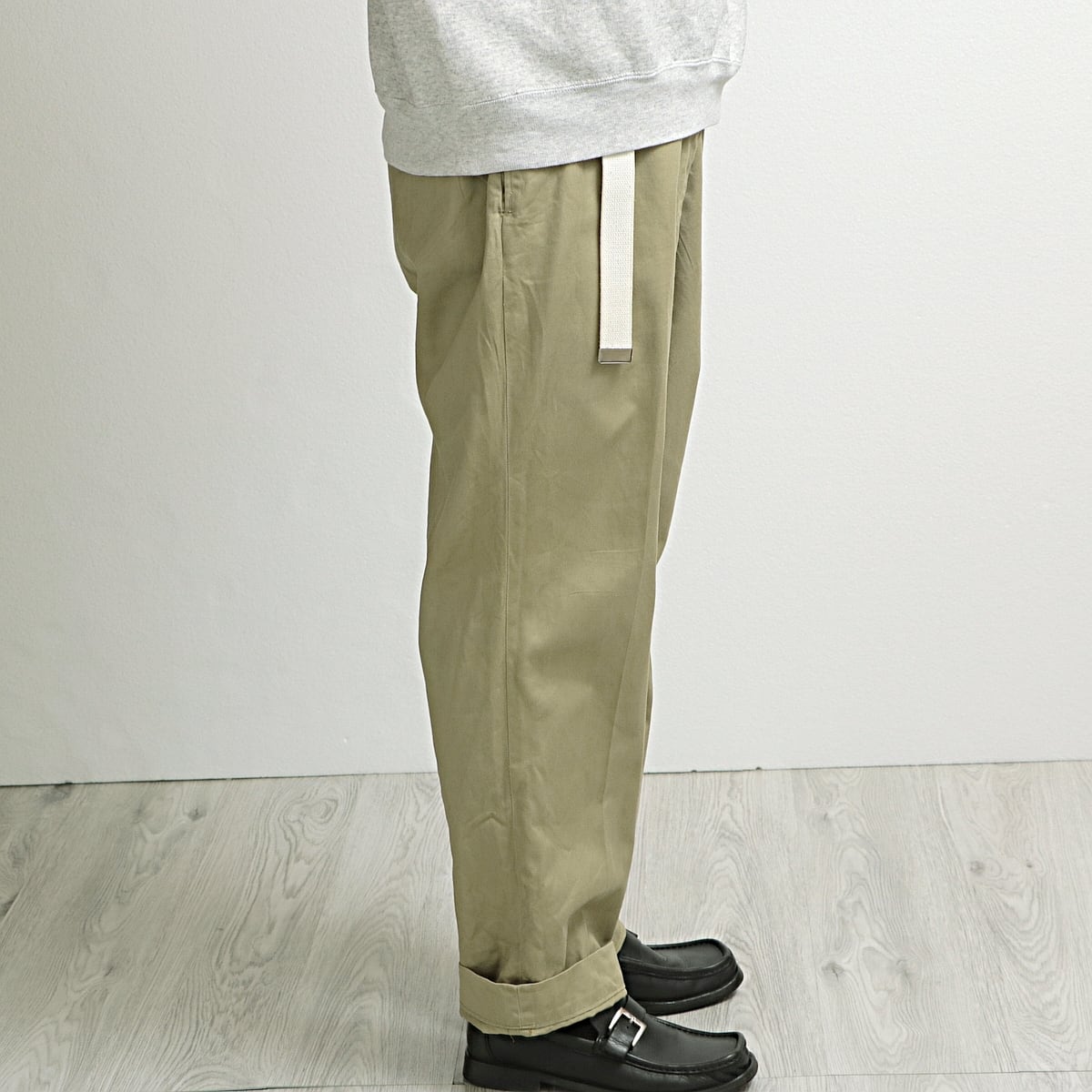 程良くウエスト周りもゆとりがあり、裾は好みで、くるぶし位までロールアップして履いたりと調整しやすいレングスです。