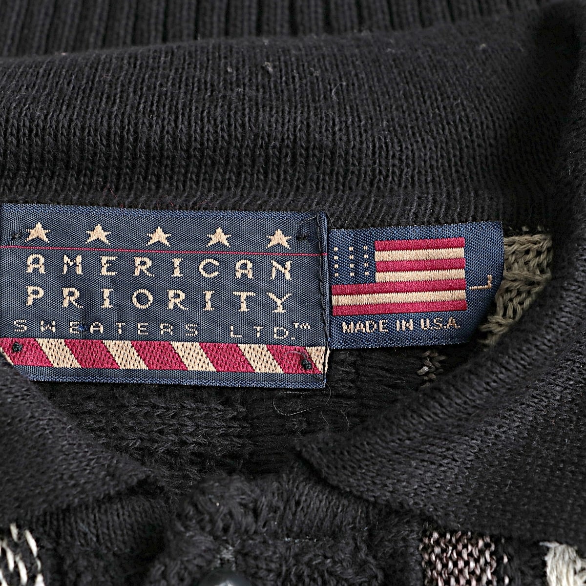 90s american priority 総柄 "coogi style" 襟付き 3D ニット セーター 古着 used usa製