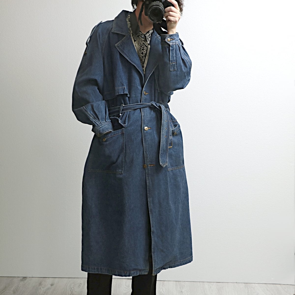 80s~ TOGETHER デニム シングル トレンチコート ロング 古着 used