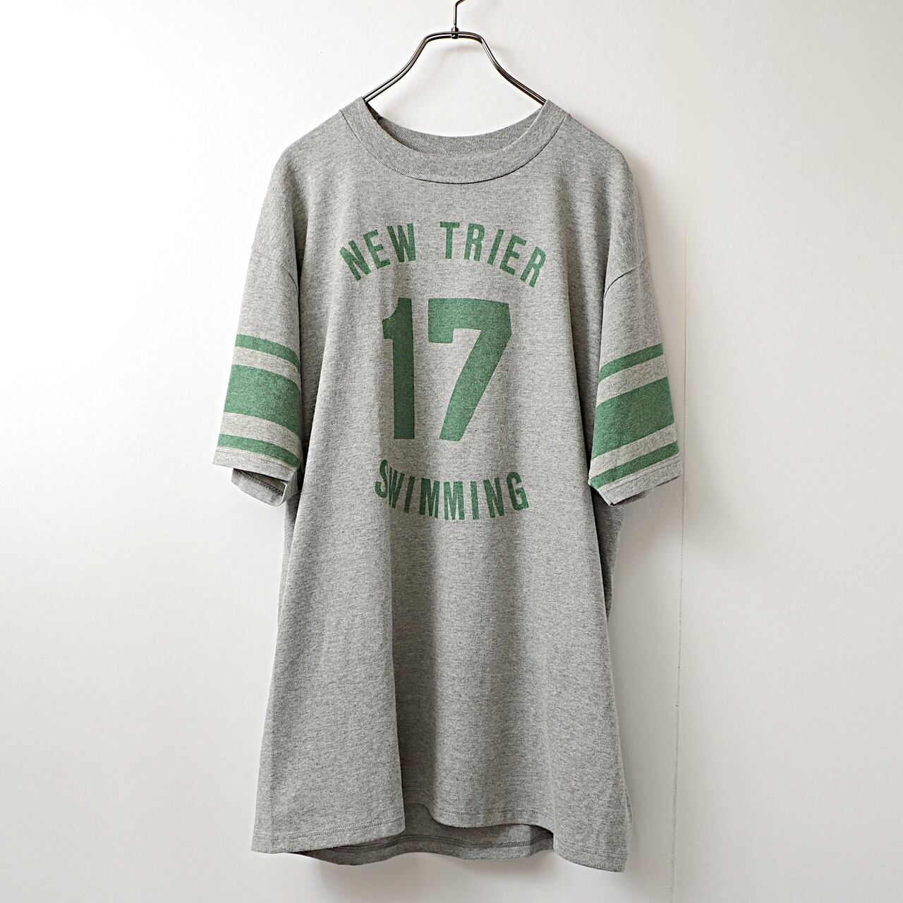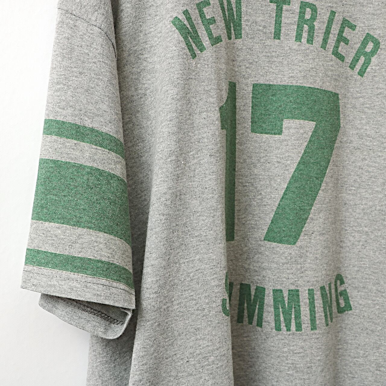 杢グレー×グリーンの配色でレトロ感あるナンバリングTシャツ。