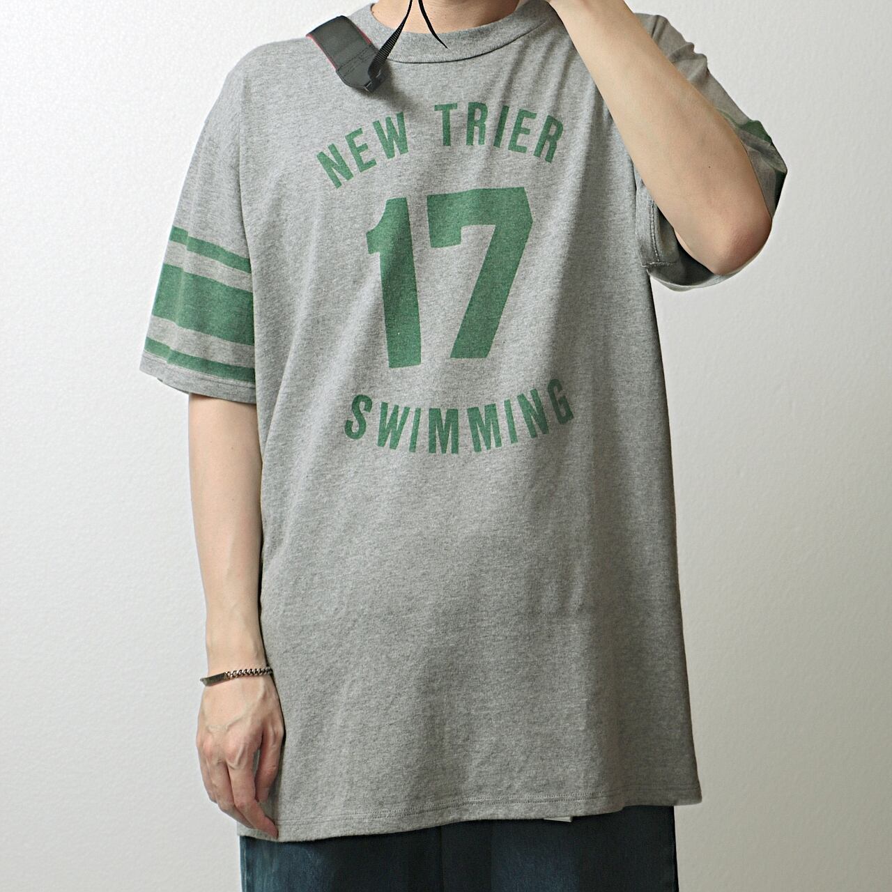 風味が増す染み込みプリントで前後は勿論、袖にもフットボールTのようなライン入りで抜かりないデザインです。