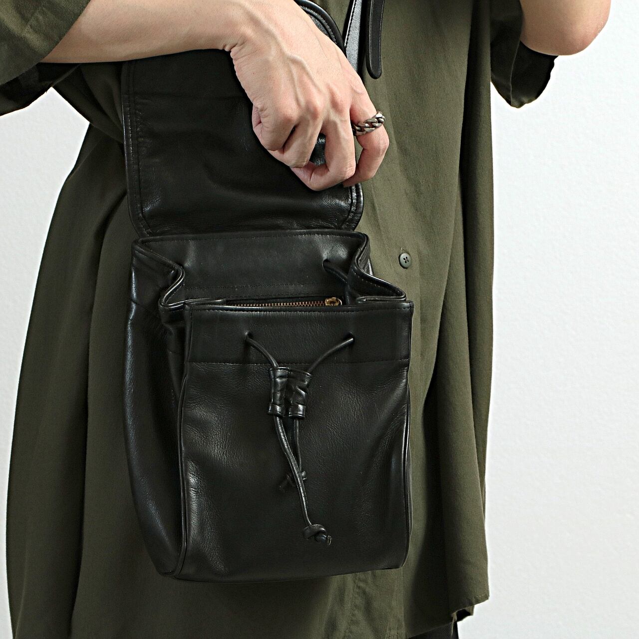 レトロな雰囲気が可愛らしいフラップ付きの巾着デザイン。