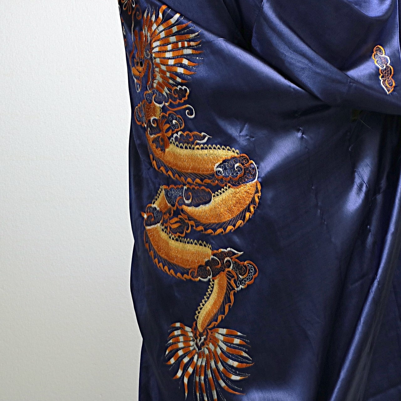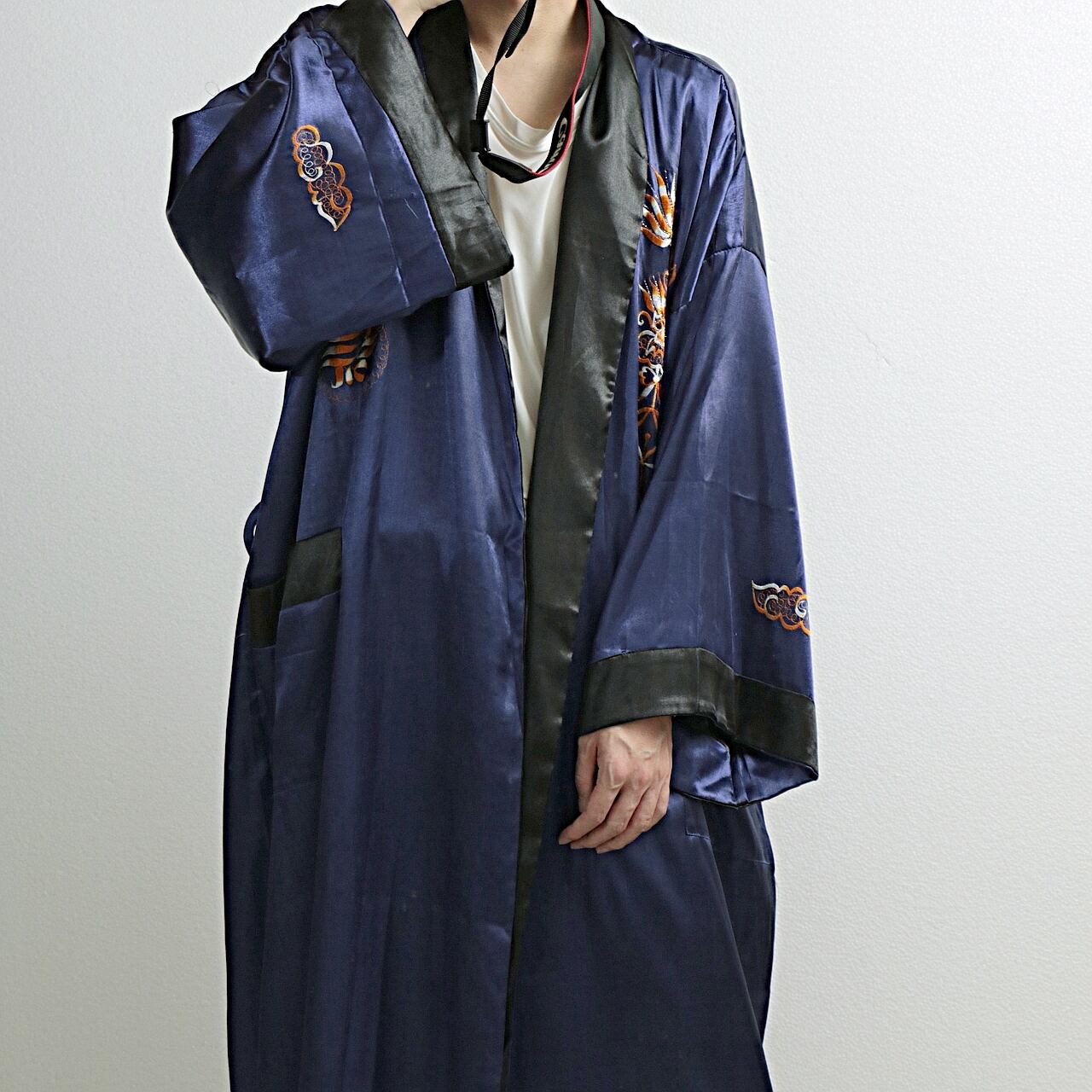 龍 中華刺繍 リバーシブル サテン ロングガウン 羽織 マキシ丈 古着 used