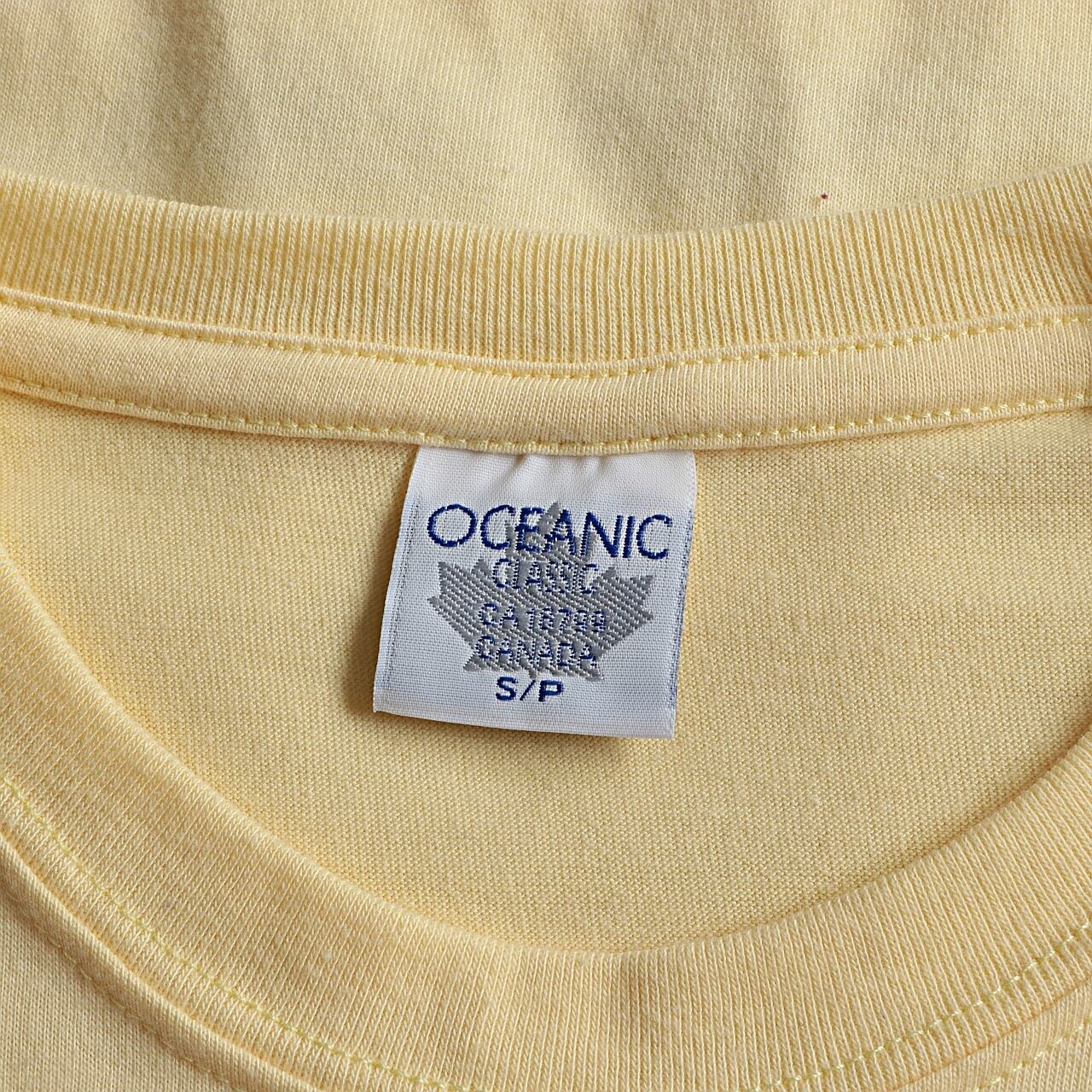 コットンとポリエステル地の出来た程良い生地感のペールイエローボディ。