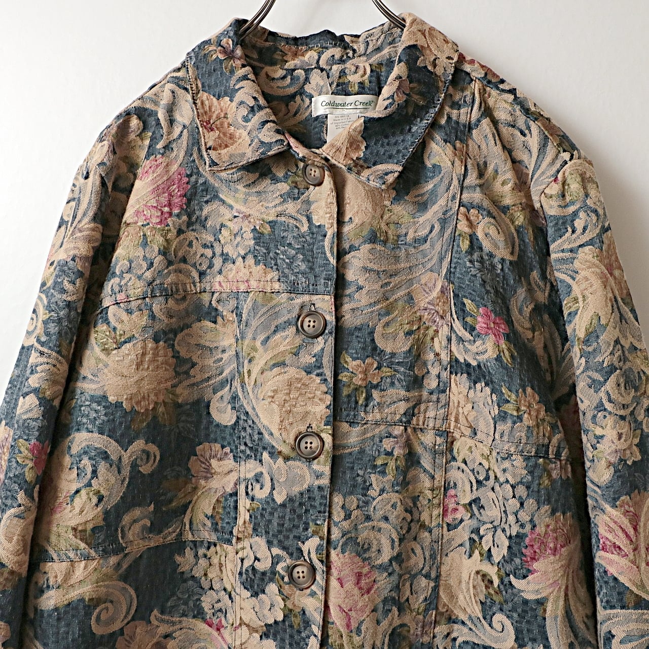 Coldwater Creek usa製 アンティーク フラワー 柄 ジャカード パッチワーク ジャケット 古着 used