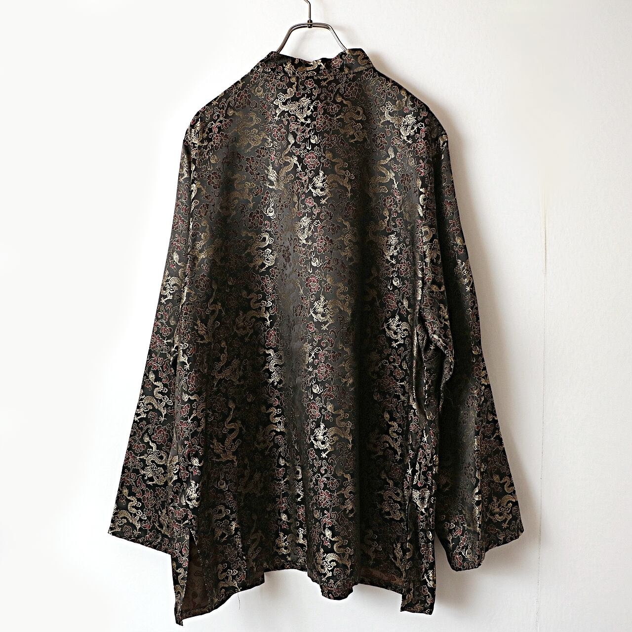 龍とボタニカル模様の総柄チャイナシャツ。