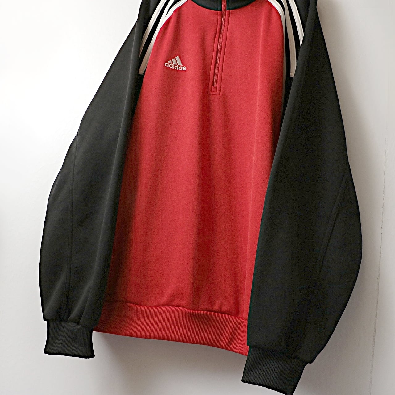 アディダスらしいブラック×レッドのハーフジップジャージ。