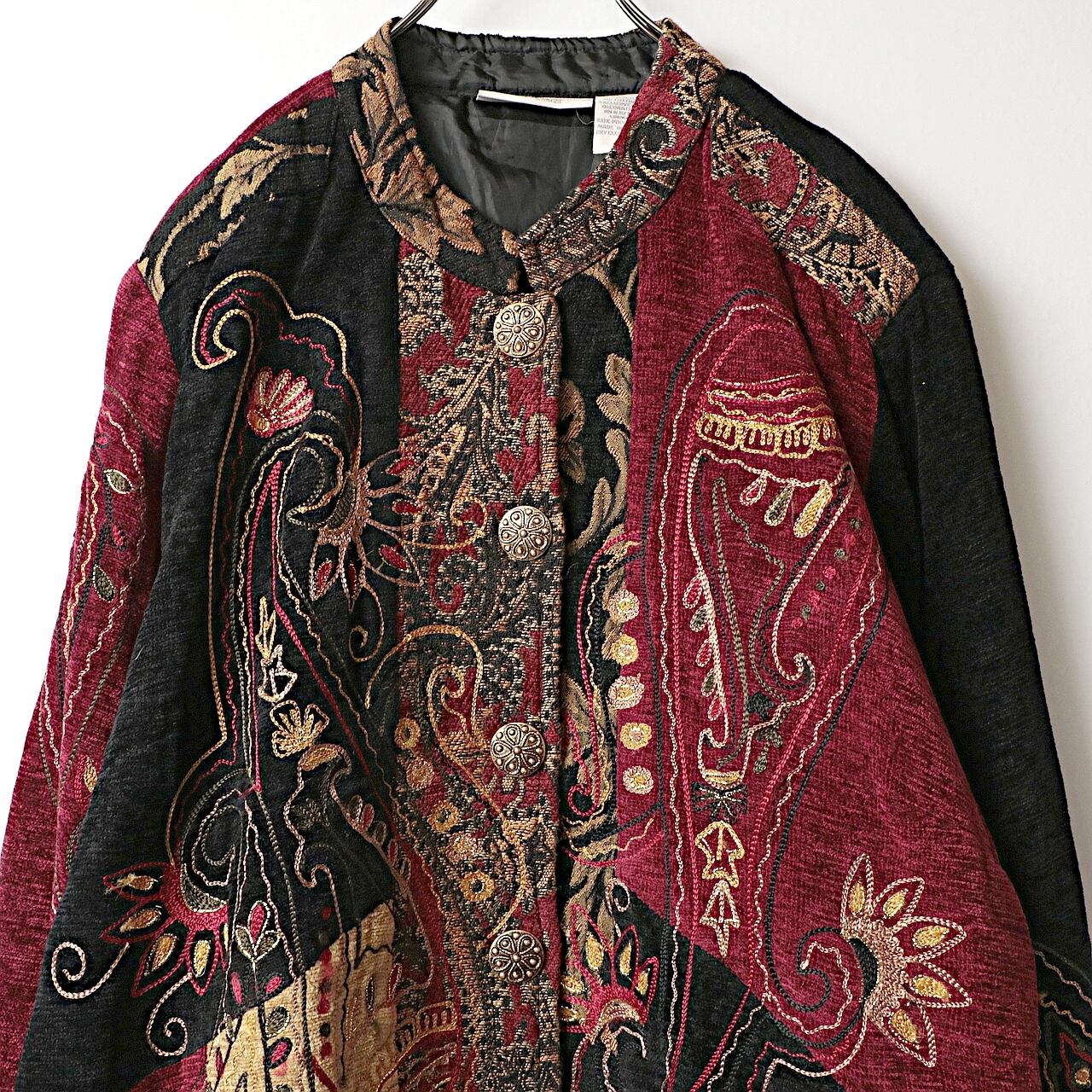 dress barn エンブロイダリー 総柄 パッチワーク ジャカード ジャケット 古着 used