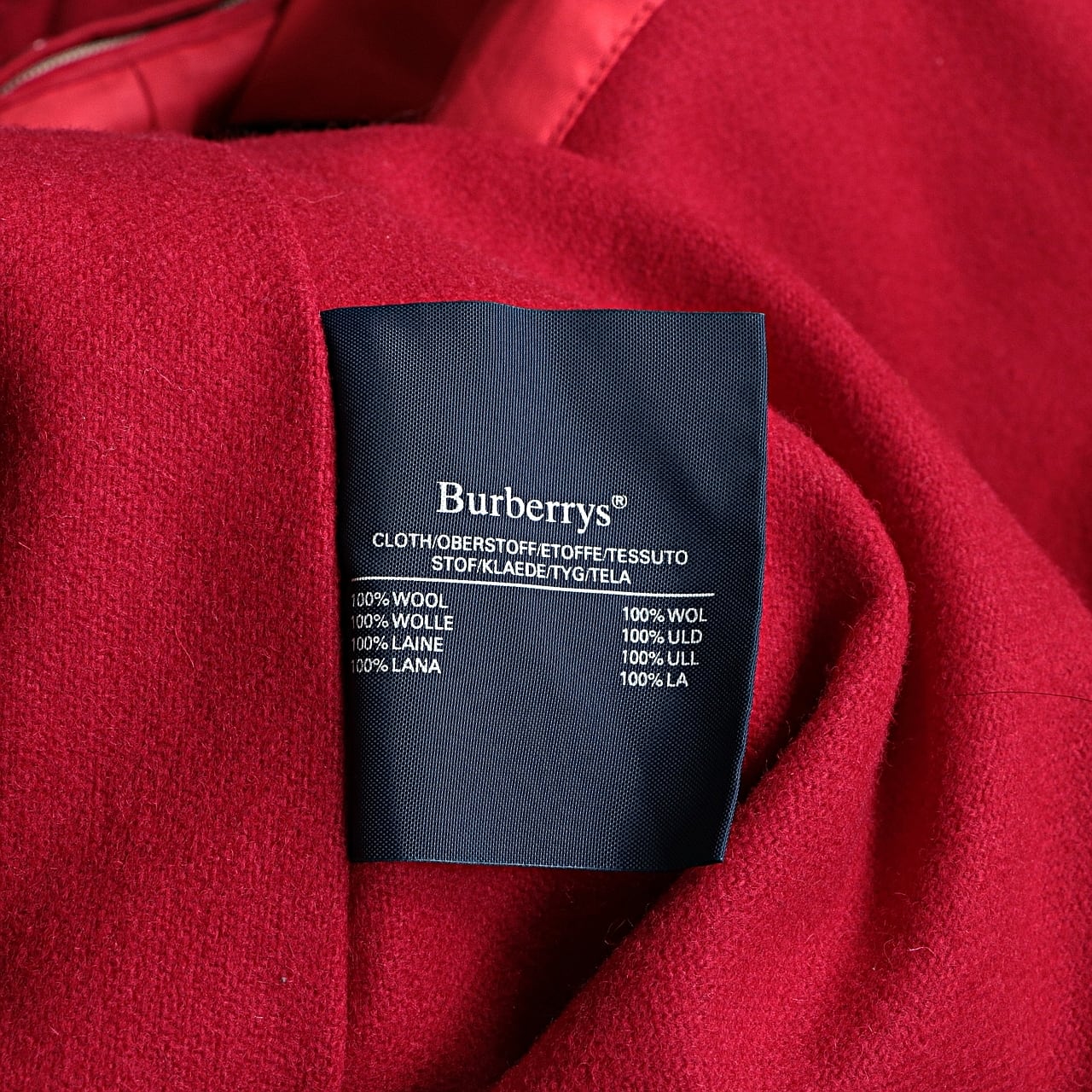 取り外し可能な付け襟とウールライナー完備の幅広い季節に楽しめるバーバリーの赤いトレンチコート。