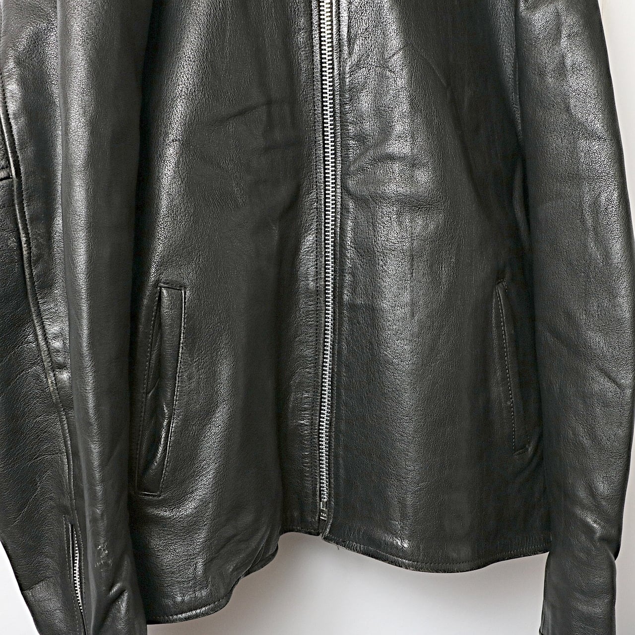 きめ細かなシボ感ある牛革を使用したシングルライダース。