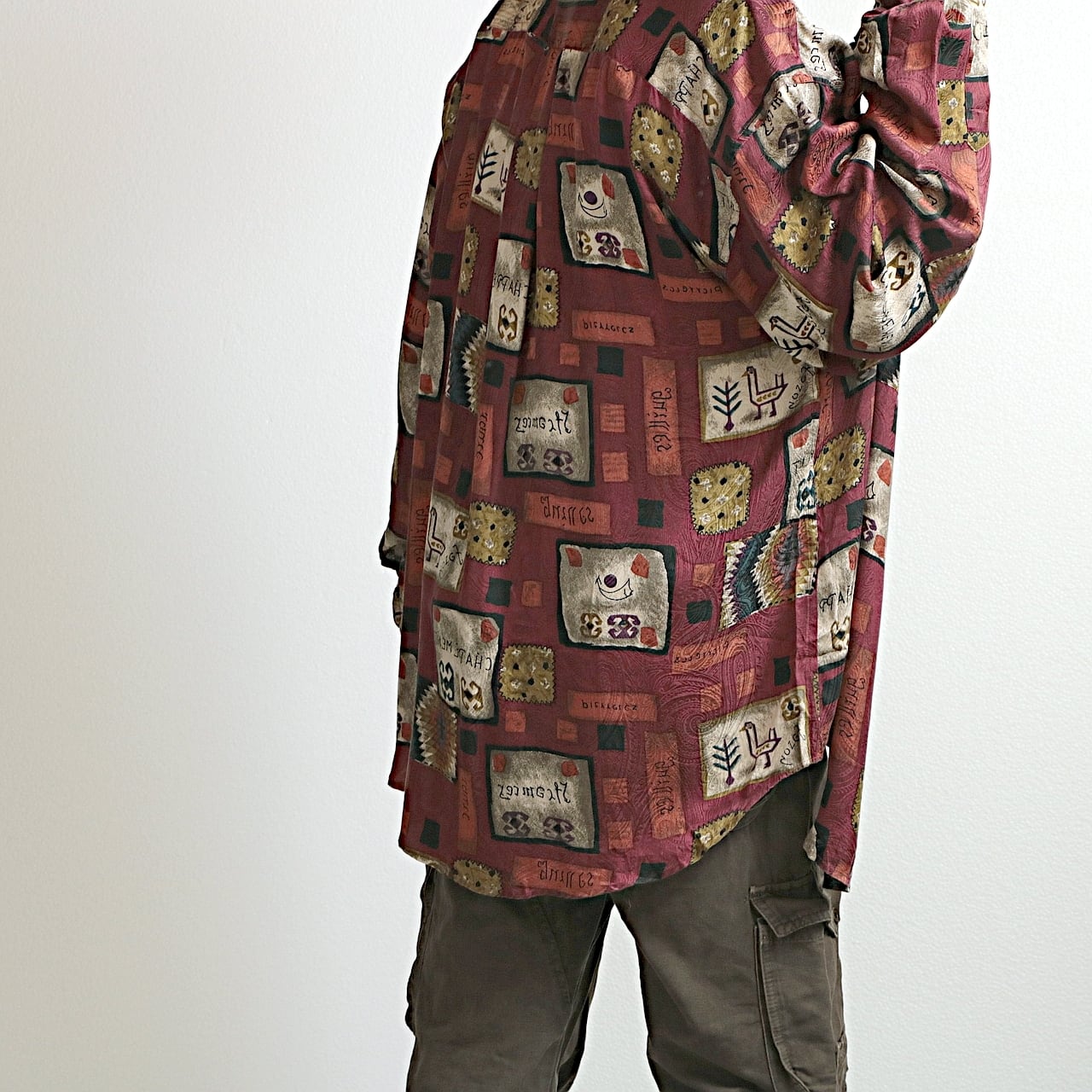 90s GOOUCH 総柄 シルク 長袖 シャツ 未使用 wine mix